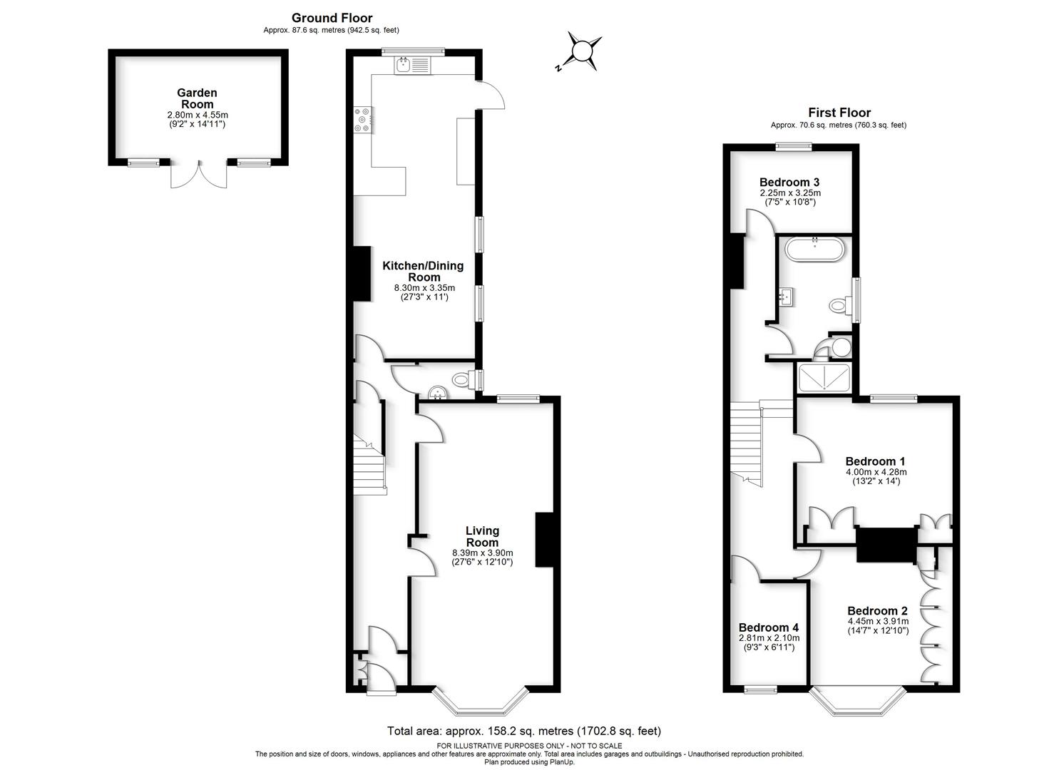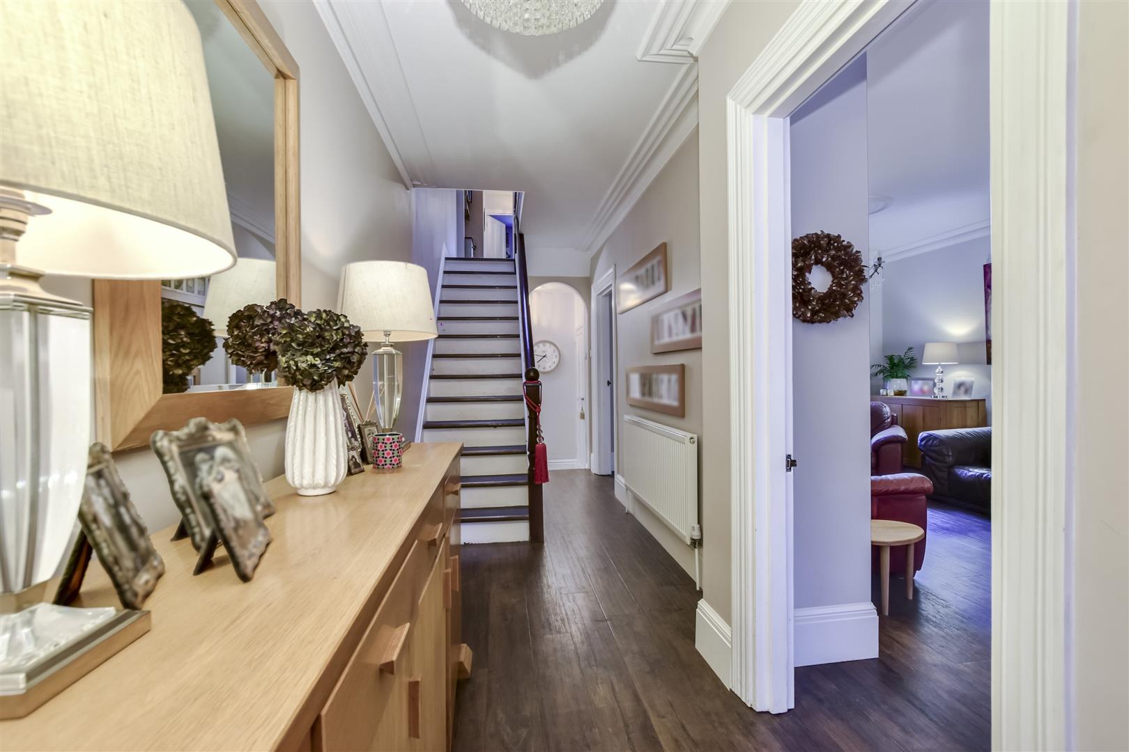 The sense of space continues on the first floor, where a long landing provides access to four well-proportioned bedrooms, offering excellent accommodation for a growing family. The luxurious family bathroom is a particular highlight, featuring a roll-top bath and a large walk-in shower.
