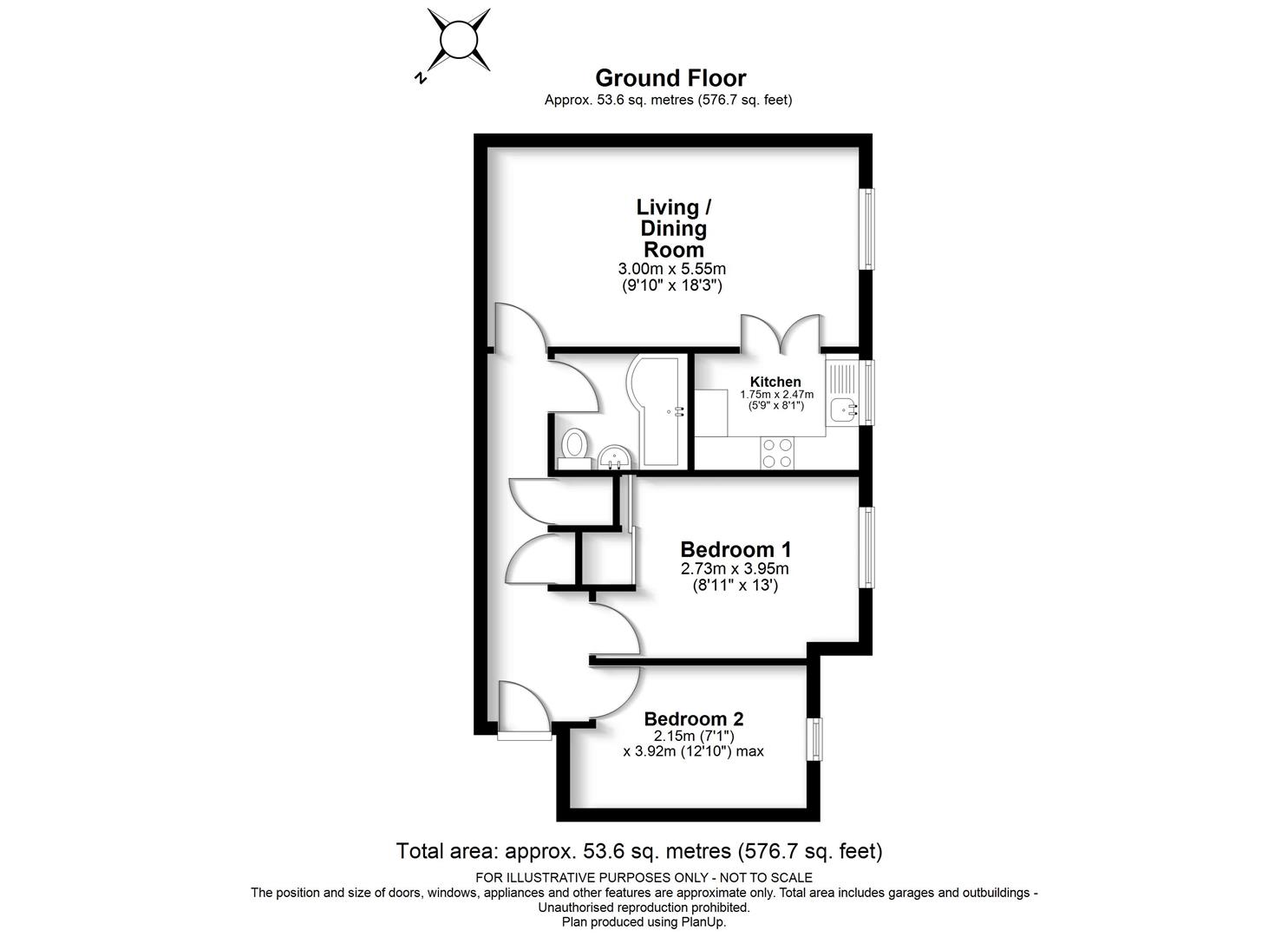 Accommodation: Entrance hall, living/dining room, separate fitted kitchen with appliances, two bedrooms and a family bathroom.