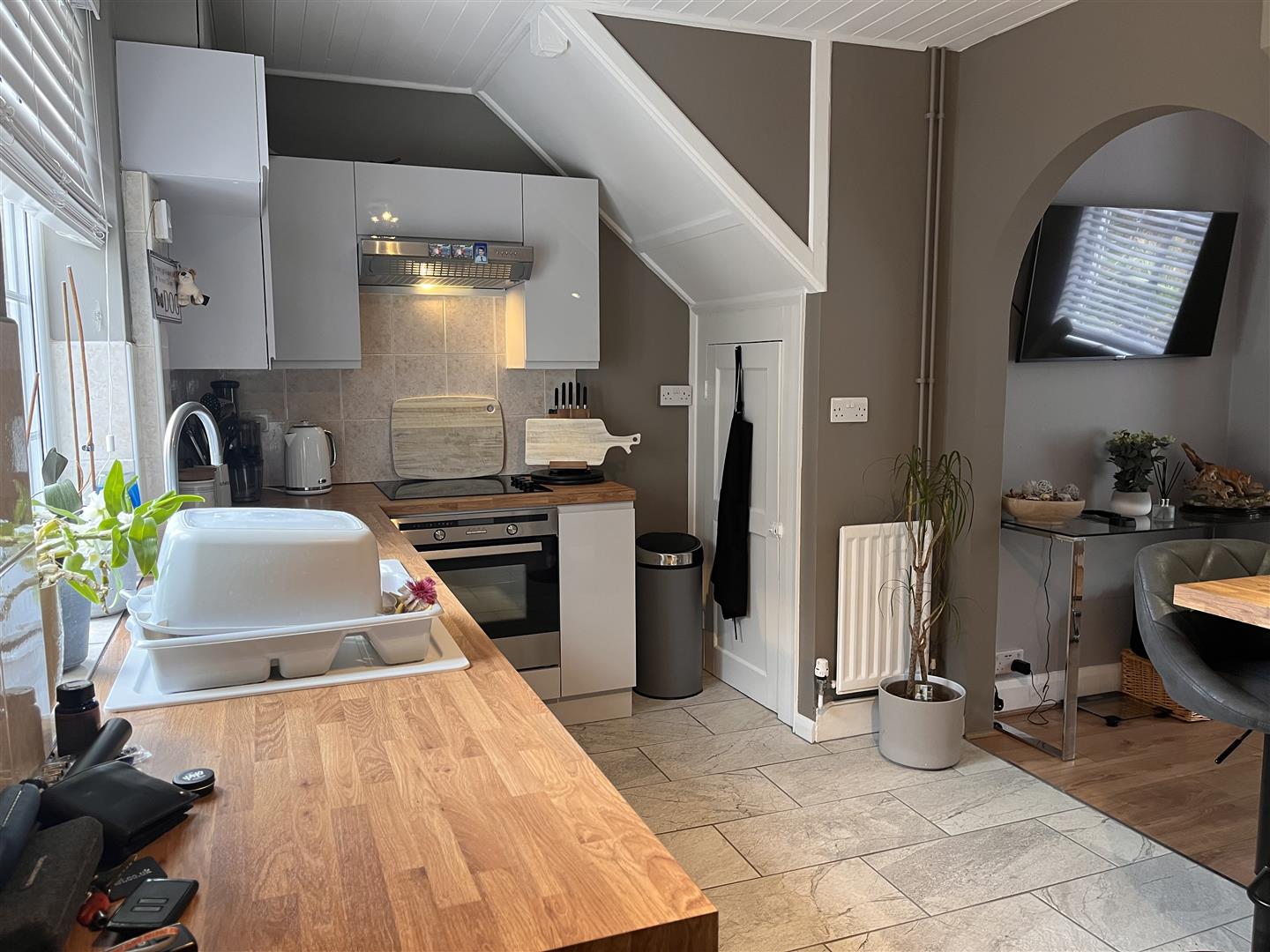 Accommodation: Entrance, living room with open fireplace, dining room with feature fireplace, good size refitted kitchen, utility area, upstairs are one large double bedroom with an inbuilt cupboard, a small double also with an inbuilt cupboard, one single bedroom/study, bathroom with electric shower over bath.