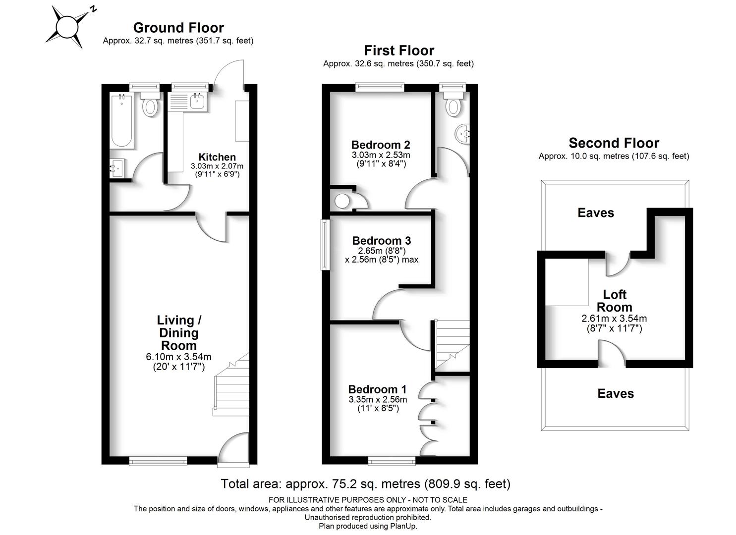 The first floor landing has doors to all 3 bedrooms and there is a separate cloakroom. A loft ladder leads up to the loft room with a window overlooking the rear.