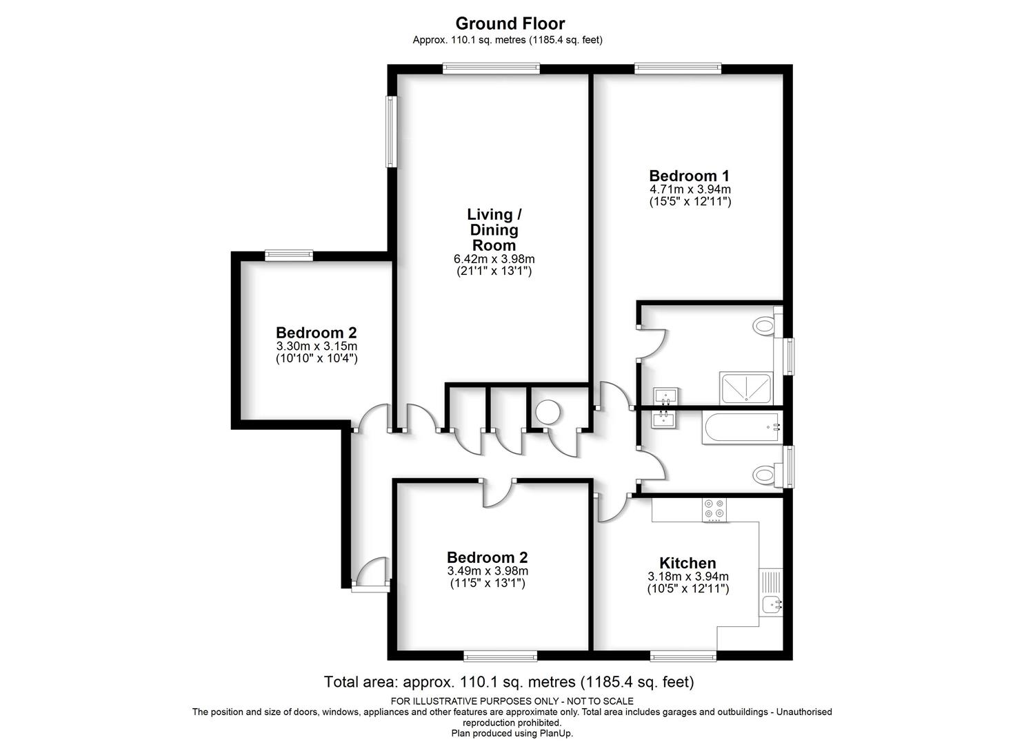 The impressive sitting room extends to over 21 feet and benefits from a dual aspect, allowing for an abundance of natural light and pleasant outlooks.