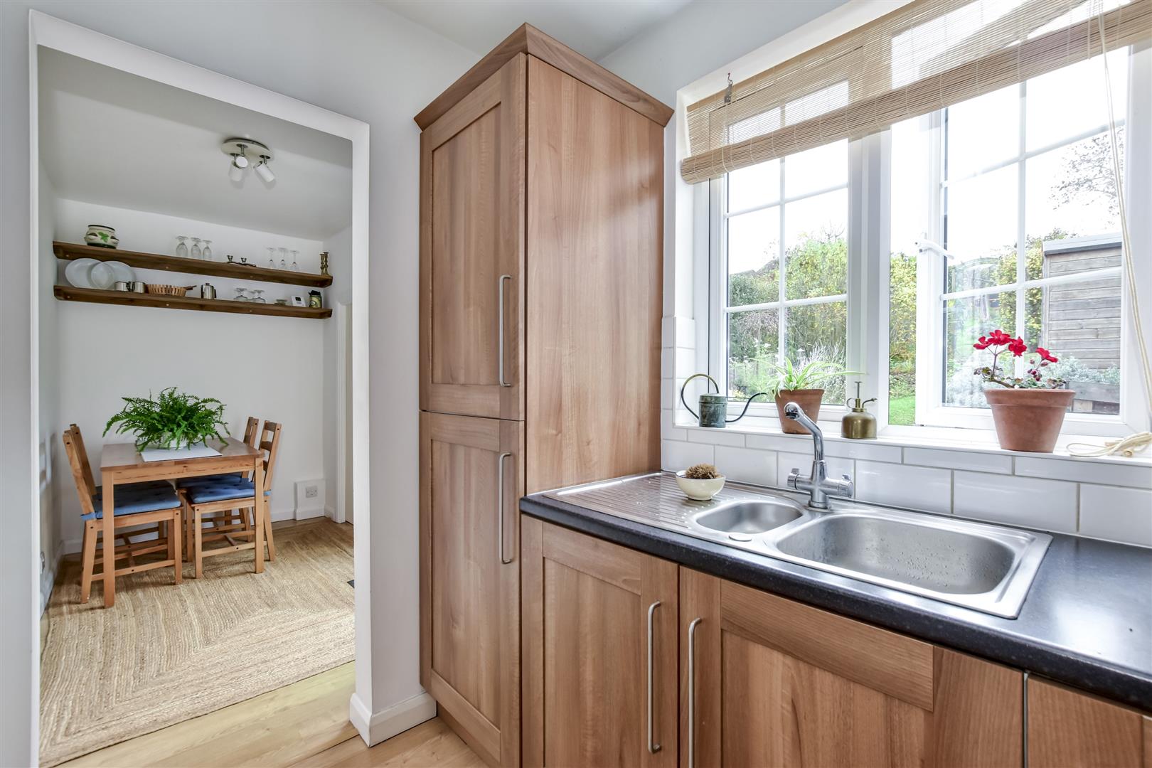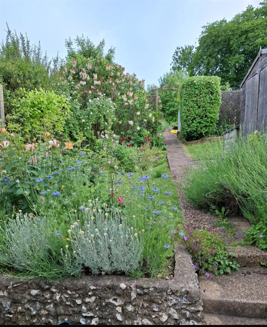 This delightful property has been tastefully updated by the current owners to create a stylish and comfortable family home. The modern fitted kitchen overlooks the generous south-facing rear garden and opens onto a bright dining area with French doors leading out to the decking — perfect for entertaining or relaxing outdoors. The welcoming sitting room enjoys views over the front garden and features a charming log burner, adding warmth and character. A contemporary bathroom completes the ground floor accommodation.