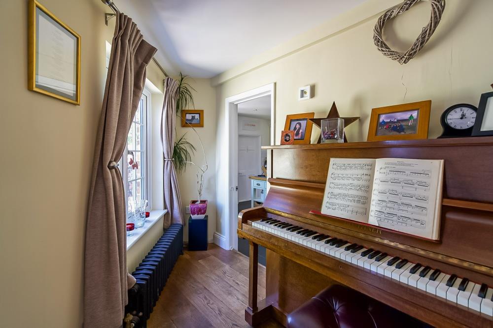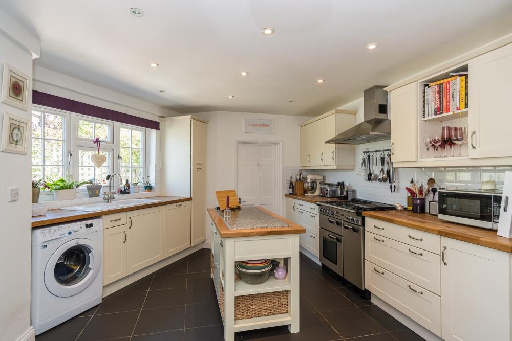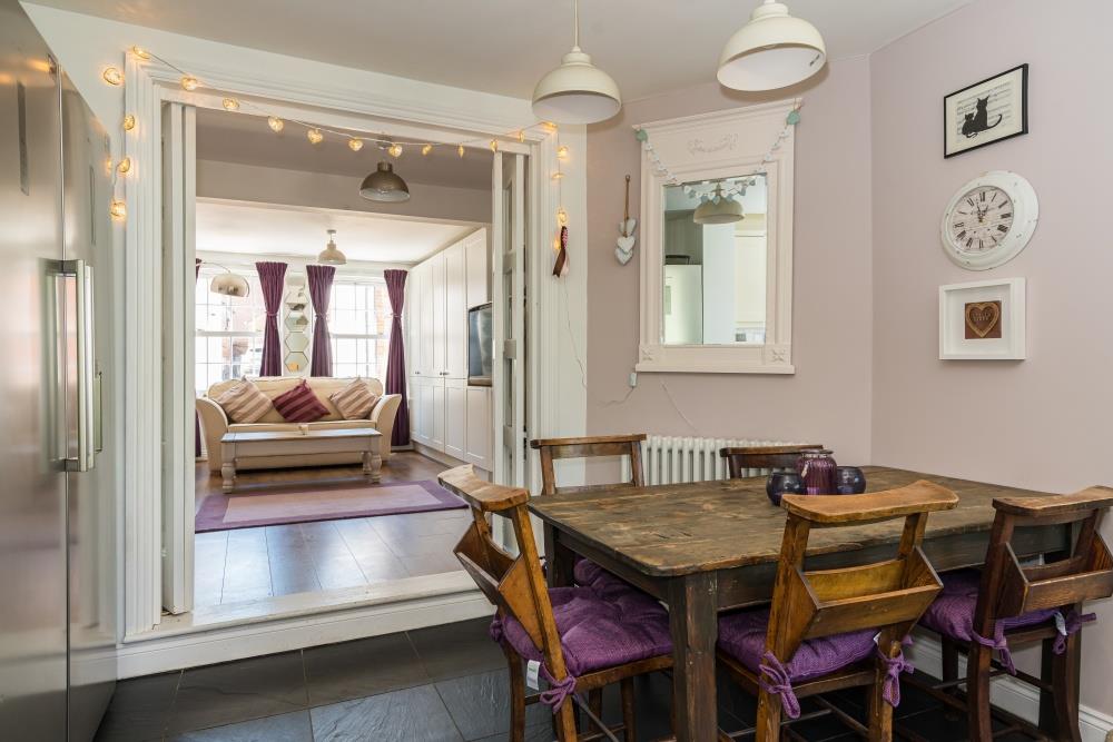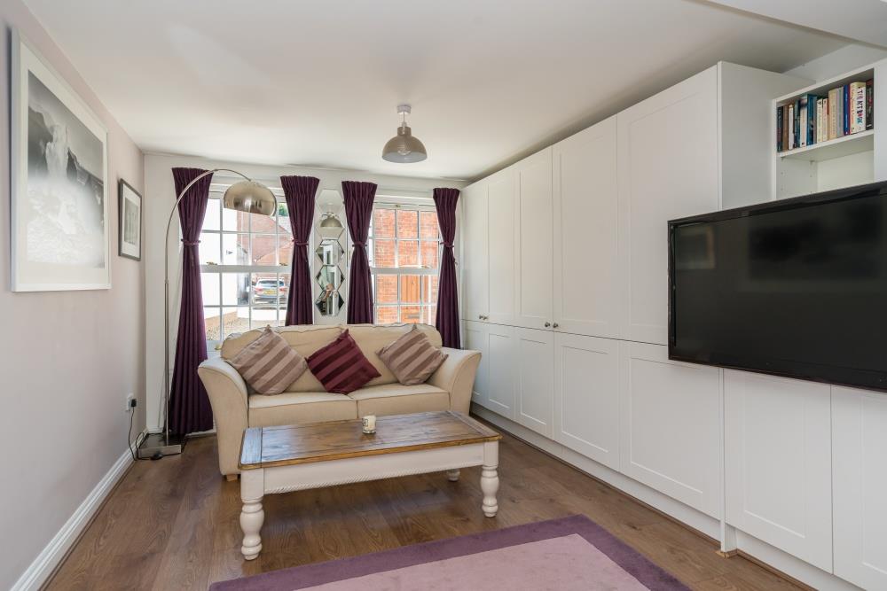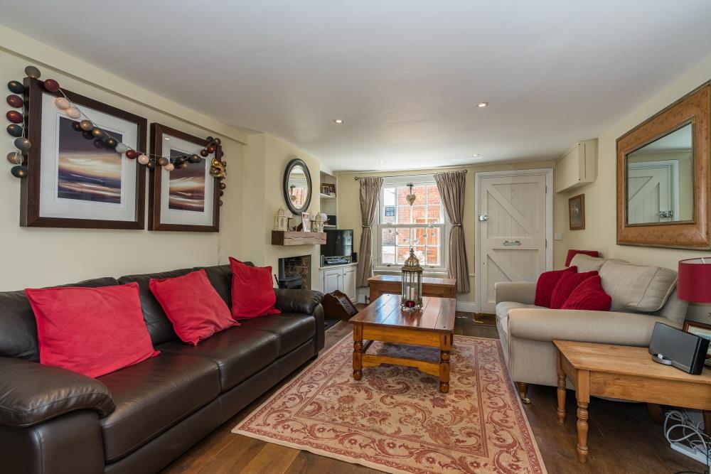 Despite its cottage façade, the ground floor offers surprisingly generous accommodation and has been extended to the rear to create a superb open-plan kitchen, complemented by a contemporary ground floor shower room. The kitchen is well equipped with a Range-style oven, space for an American-style fridge/freezer, an integrated dishwasher and a freestanding central island unit (available by separate negotiation). Double doors open into a versatile family room—also suitable as a ground floor bedroom—featuring bespoke fitted cabinetry.