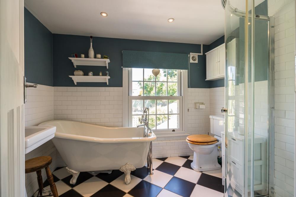 To the first floor are three well-proportioned double bedrooms, a separate study and a family bathroom fitted with a roll-top bath and separate shower cubicle.