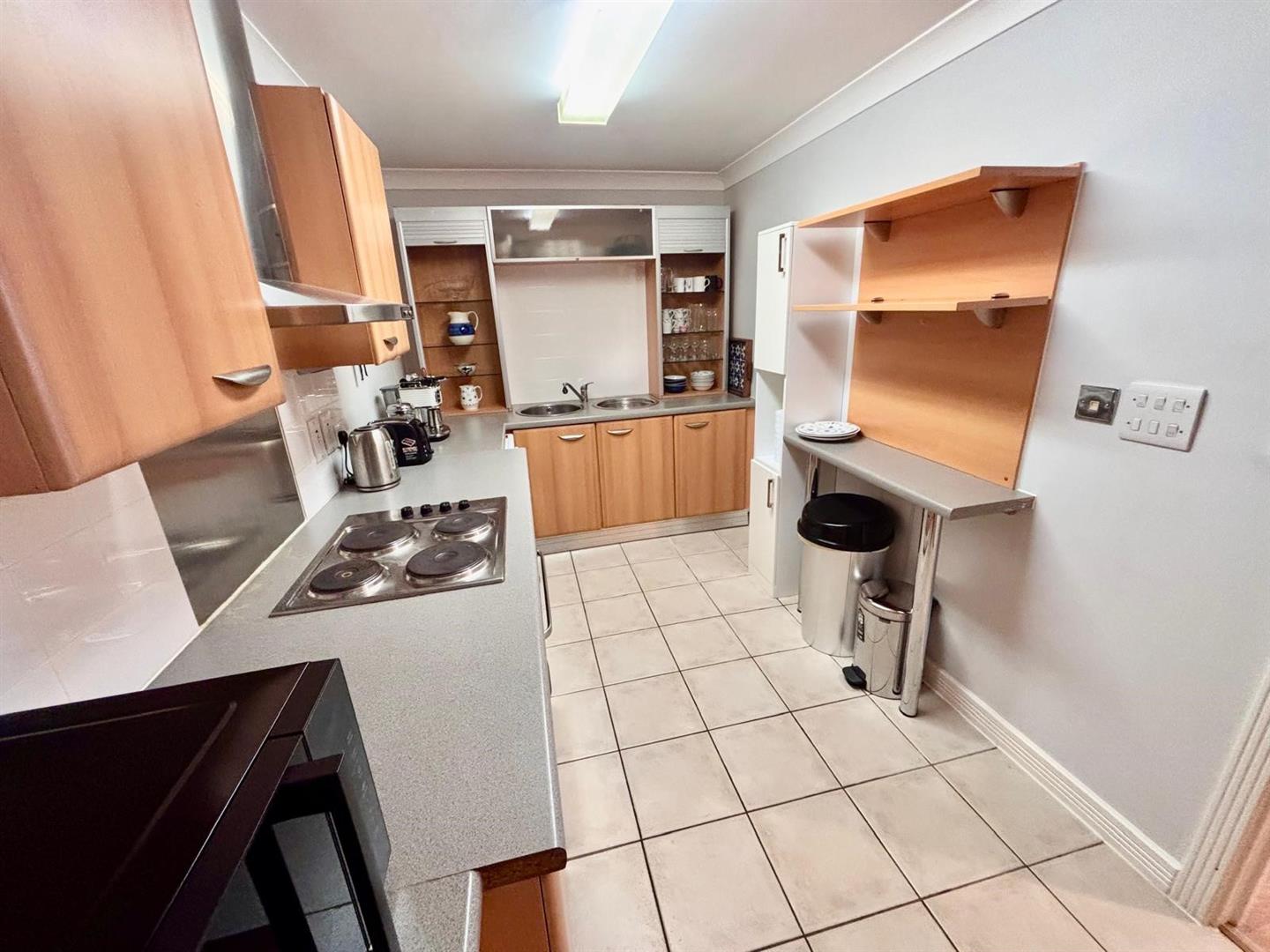 Separate fitted kitchen with integrated appliances, including dishwasher and washing machine