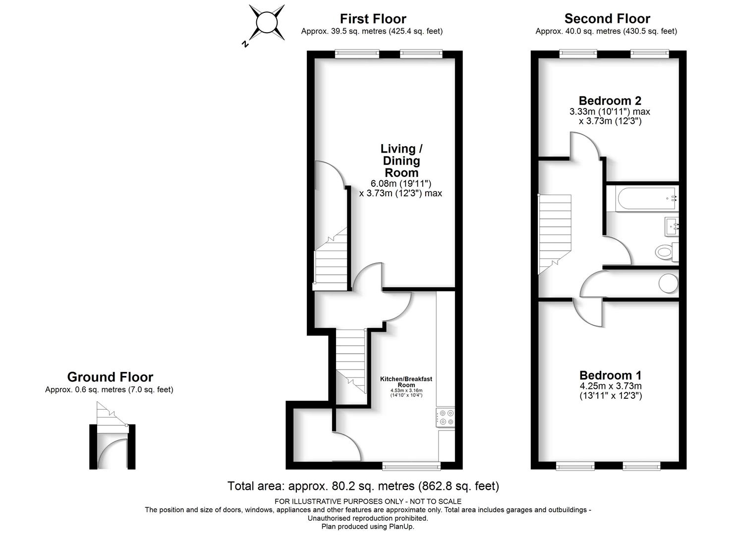 The accommodation comprises stairs rising to an entrance hall leading to a bright and spacious living room, a separate kitchen, and a generous large storage cupboards. On the second floor, the master bedroom is light and airy, complemented by a family bathroom. A sizable second double bedroom completes the internal layout.