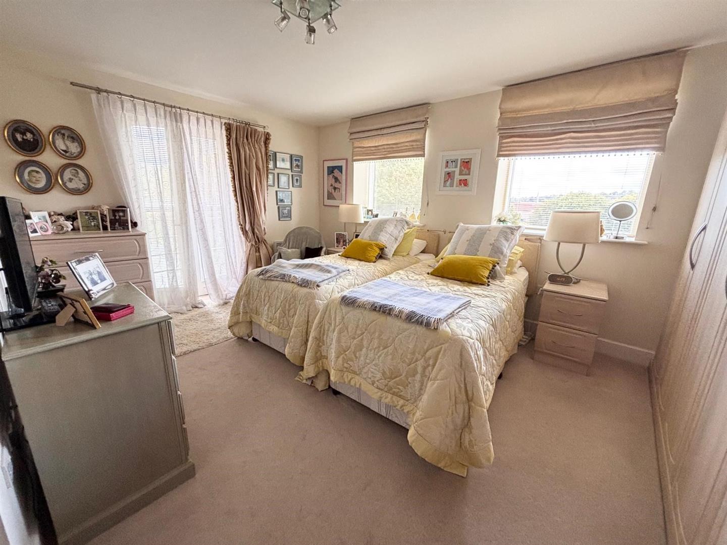Upstairs, the spacious principal bedroom enjoys an en suite shower room and French doors to a second Juliet balcony. A further double bedroom is served by a modern family shower room.
