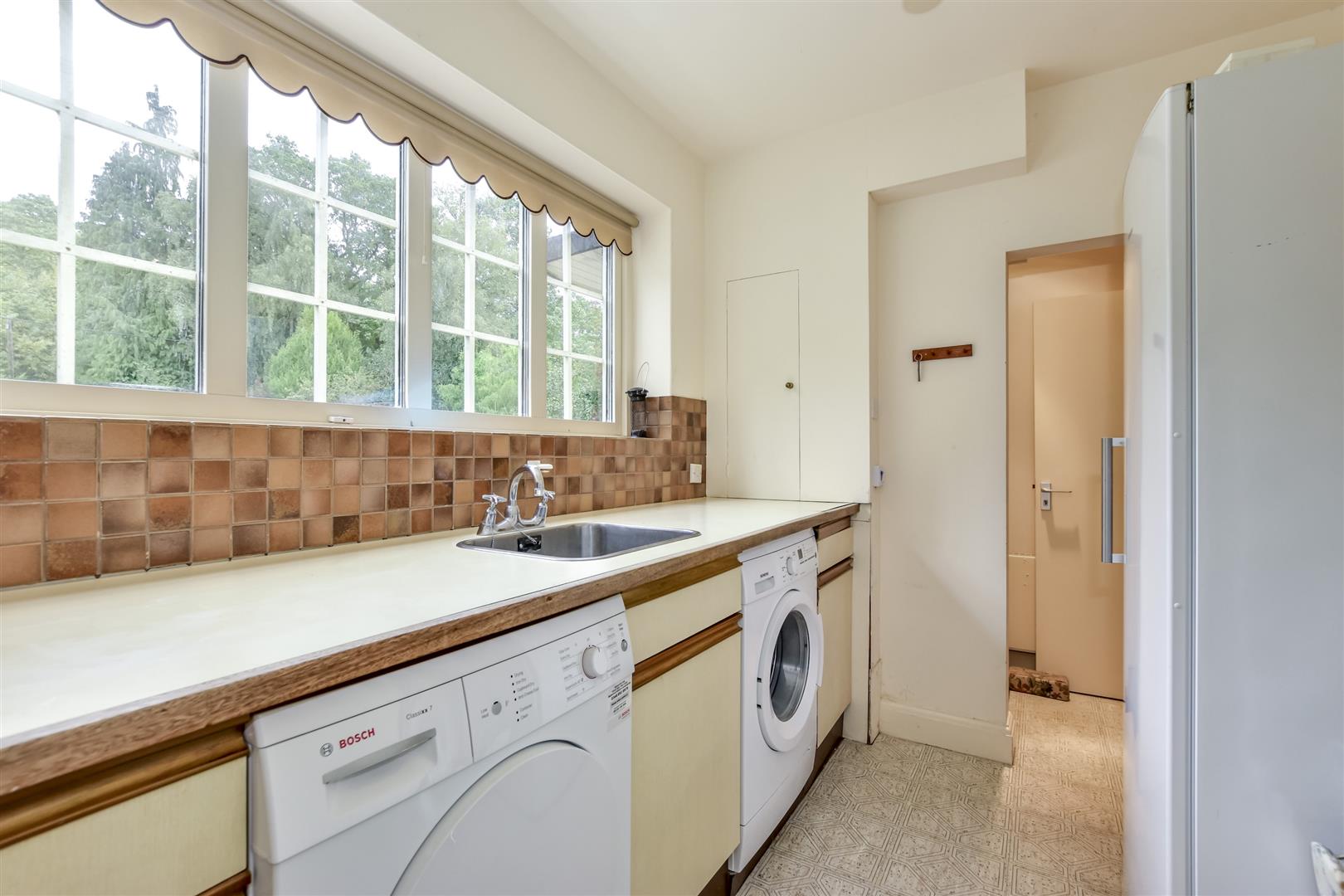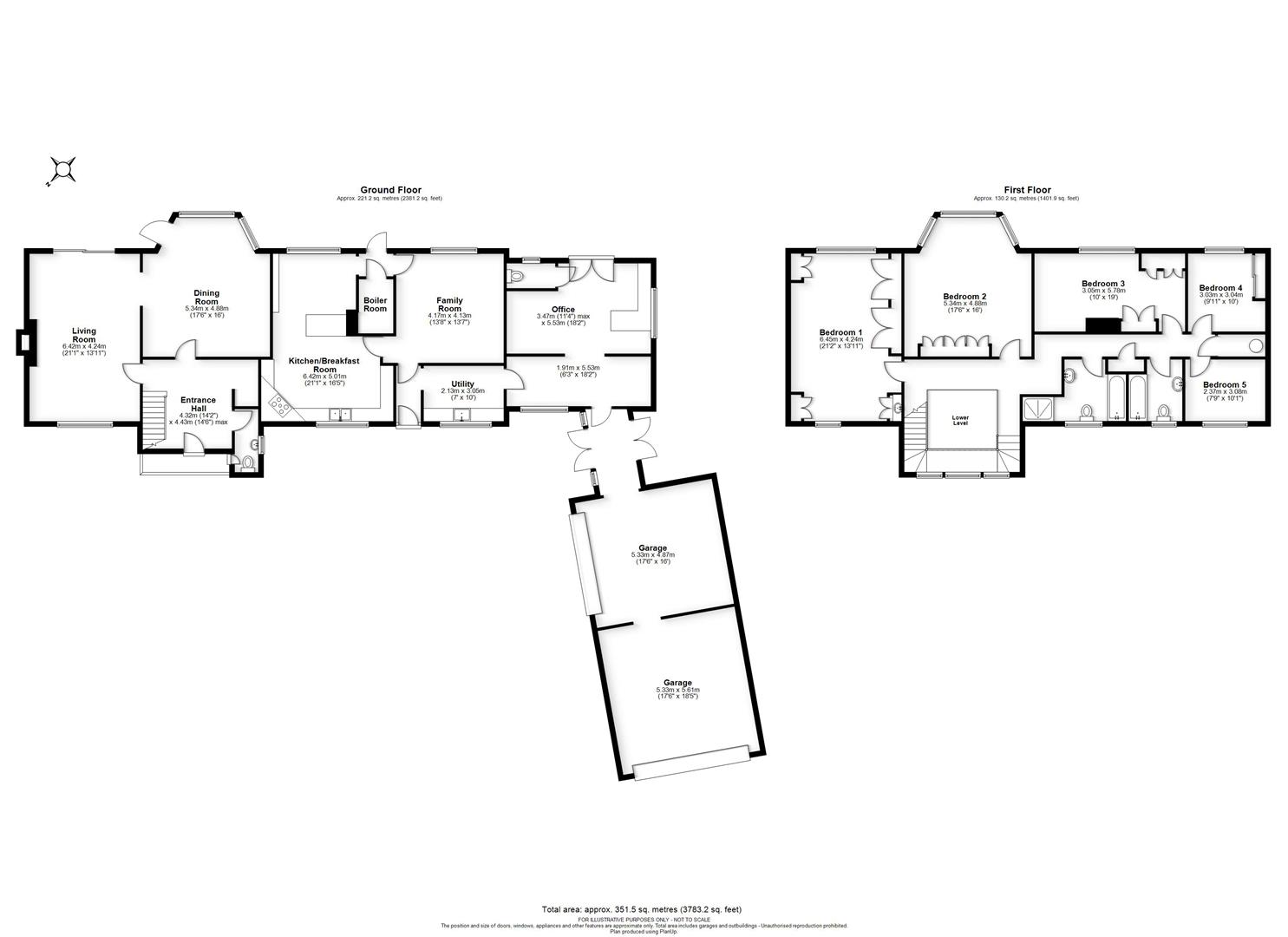 Approached via a sweeping gravel driveway and set well back from the road, the property enjoys complete privacy. The generous parking area, complemented by two double garages, offers superb space for multiple vehicles or hobbies.